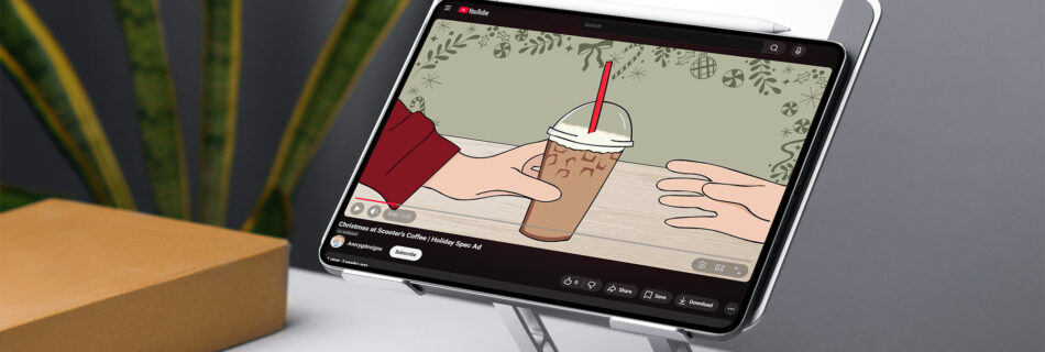 Titled Christmas at Scooters, this project is a rotoscoped spec advertisement promoting Scooters Coffee holiday flavors. Created using Adobe Premier and Adobe Animate, the goal was to make a dynamic, hand-drawn ad that captures the spirit of the brand. This project allowed me to show my illustration skills while developing a visually engaging and unique promotional piece.